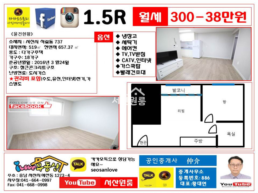 특히 창 밖에 건물이 없어서 답답하지 않습니다.. 주방에 중문이 있어서 너무 좋고요.. 신축 느낌의 구조도 좋고 아주 저렴한 월세 구경오세요.. 언제든지 궁금하시면 상담전화주세요.. 서산시내 지역 픽업서비스 가능해요.. ^^