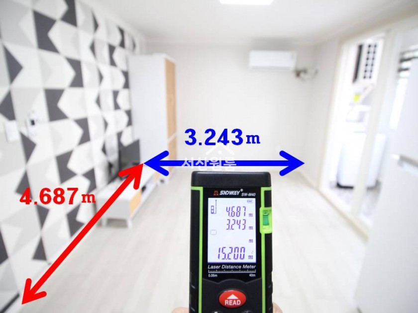 *평수측정   방  15.200제곱미터( 4.59평 )  ->>  실사용면적   방 +_발코니 + 욕실 = 약 7평..