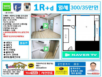 * 보증금 300만 월 32만           **관리비3만원별도 있음. (관리비에 수도,유선,인터넷포함) *** 관리비포함 35만원...