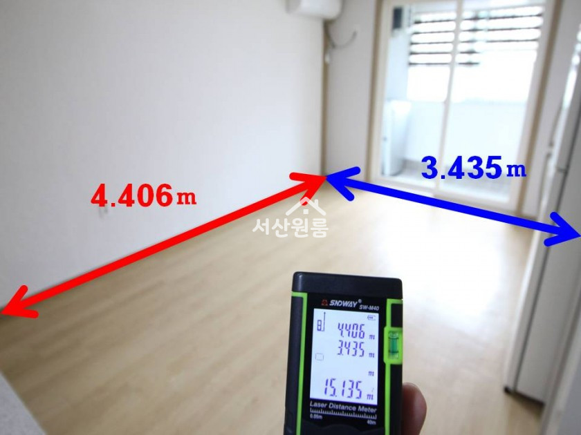 *평수측정   방  15.135제곱미터( 4.59평 )  ->>  실사용면적   방 +_발코니 + 욕실 = 약 7.5평..