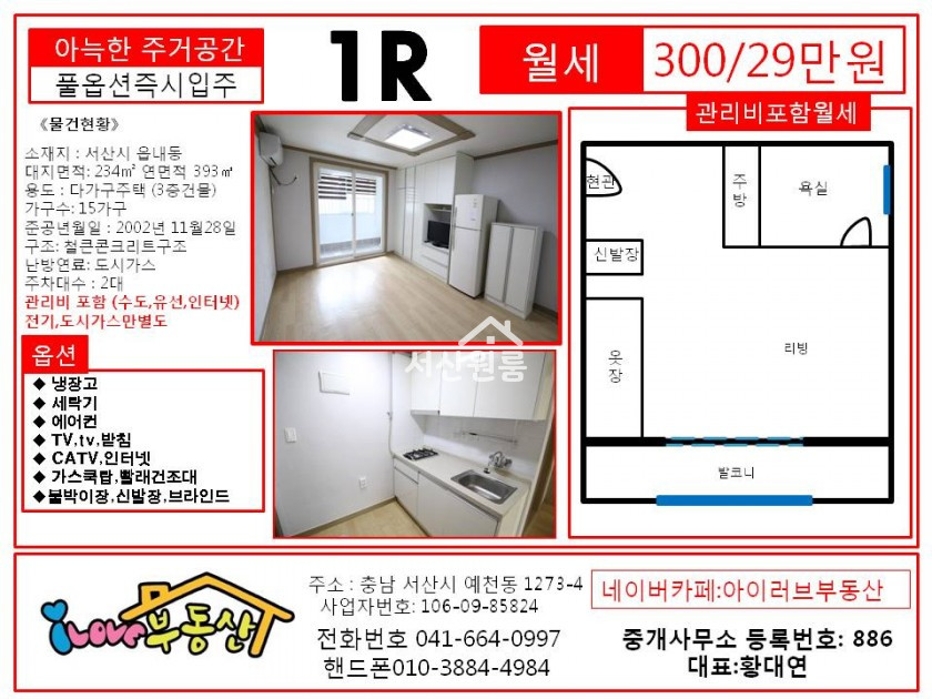 *보증금300만 월 26만     **관리비 3만원별도.. (수도,유선,인터넷,공용전기)  & 관리비포함 29만원...