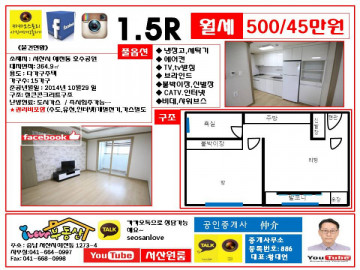 * 보증금 500만 월 40만  ** 관리비5만원별도 있음. (관리비에 수도,유선,인터넷포함)