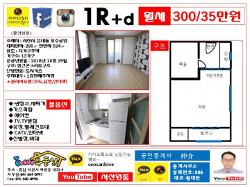 * 보증금 300만 월 32만      **관리비3만원별도 있음. (관리비에 수도,유선,인터넷포함) **관리비포함월세 35만원
