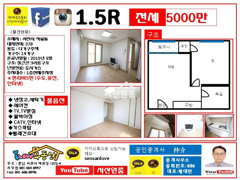 *전세 5000만  관리비 5만원 (관리비포함항목, 수도,유선,인터넷,공용전기~