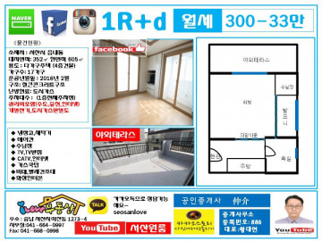 * 보증금 300만 월 30만      ****관리비 3만원별도  .(관리비에 수도,유선,인터넷포함)  **관리비포함 33만원