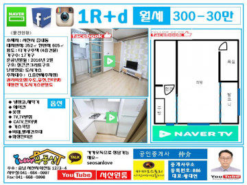 * 보증금 300만 월 27만      ****관리비 3만원별도  .(관리비에 수도,유선,인터넷포함)  **관리비포함 30만원