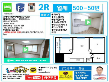 * 월세보증금 500만 월세45만  관리비5만원별도 있음. (관리비에 수도,유선,인터넷포함)*** 관리비포함 월세50만원