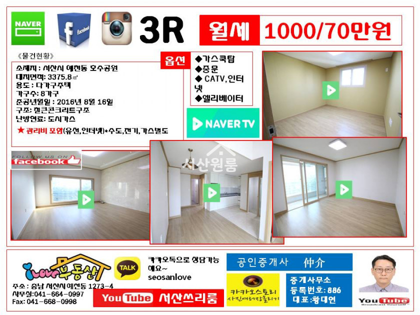 오늘도 현장실시간쓰리룸 매물을 전해드립니다.