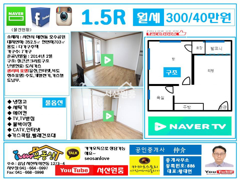유튜부에서 서산원룸 검색하시면 동영상을 유튜브에서도 보실 수 있습니다.. ^^