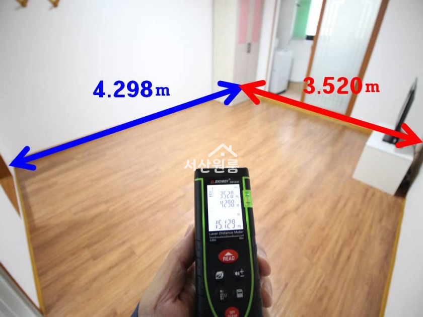 *평수측정   방  12.307제곱미터(3.72평)  ->>  실사용면적   방 (주방) 발코니 + 욕실 = 약 8평..