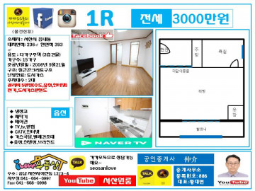 *전세 3000만 관리비 5만원입니다. ^^ **전세 매우 안전하오니 걱정않하셔도 됩니다.**