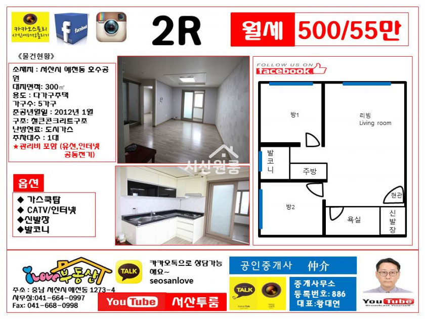 * 월세보증금 500만 월 50만   **관리비5 만원별도 있음. (관리비에 수도,유선,인터넷포함) **관리비포함월세55만원
