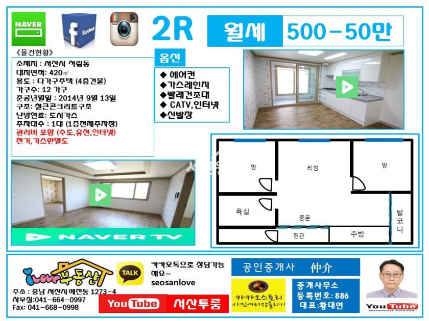 오늘은 현장실시간투룸 매물을 전해드립니다.