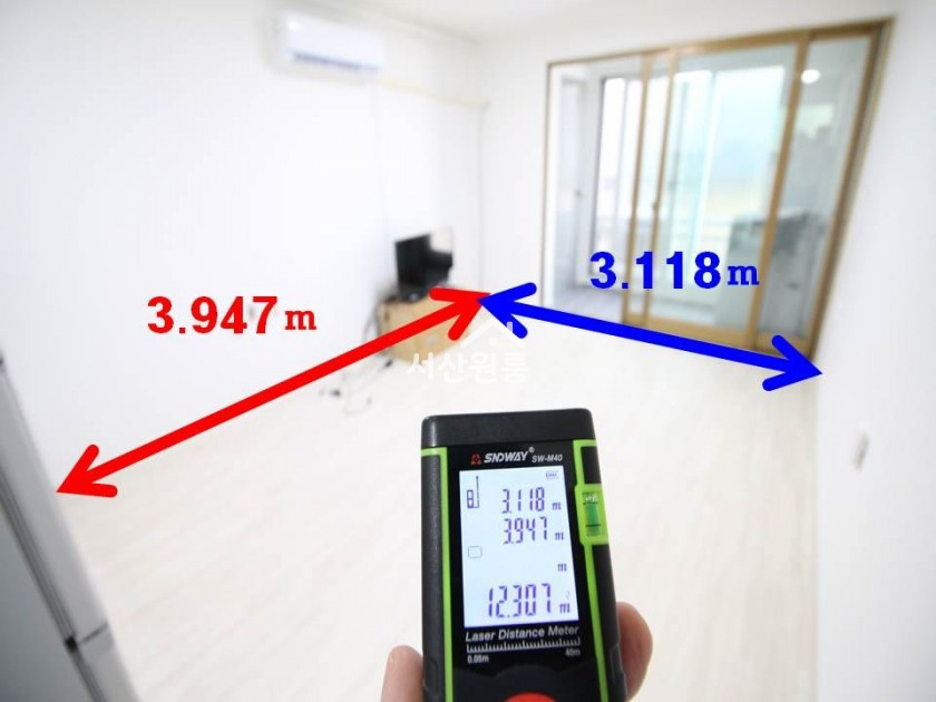 *평수측정   방만  12.307제곱미터(3.72평)  ->>  실사용면적   방 (주방) 발코니 + 욕실 = 약 7평(23.14제곱미터) ..-> 2층 중 일부 면적임.