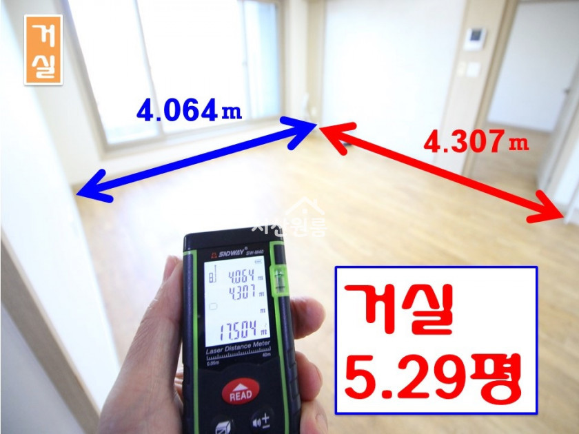 *평수~ 평수측정 * 거실 14.626제곱미터(4.42평)   방 12.564제곱미터(3.80평)