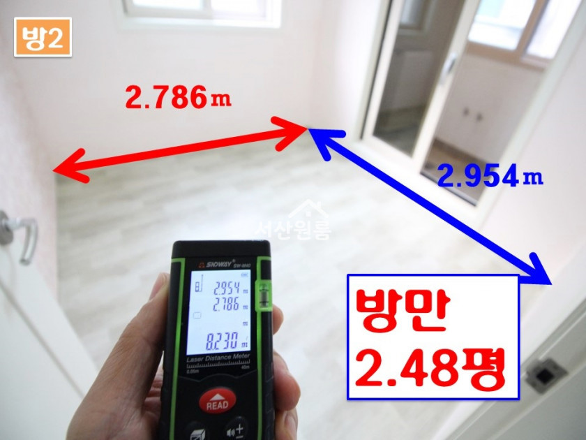 *평수~ 평수측정 사진~   거실 18.209제곱미터(5.50평) /  큰방 11.971제곱미터(3.62평) /  작은방   8.230제곱미터(2.48평)